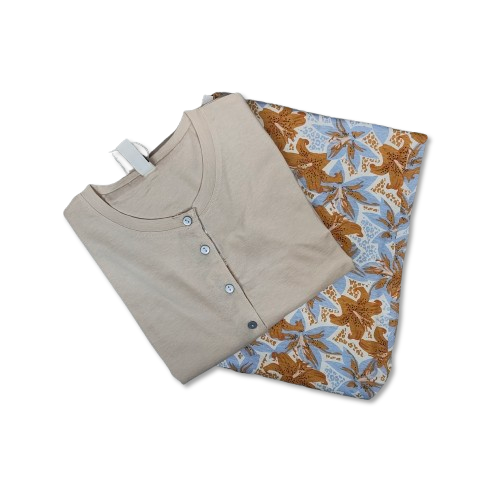 Camicia da notte in cotone jersey manica lunga, con apertura davanti con 4 bottoncini.