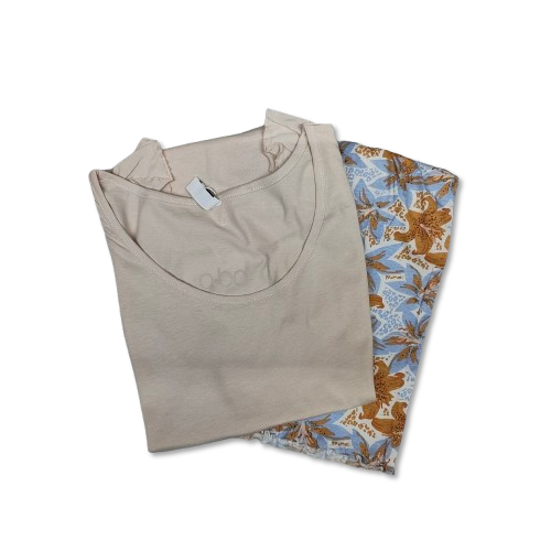 Canotta da notte in cotone jersey, con pantaloncini corti in fantasia floreale.