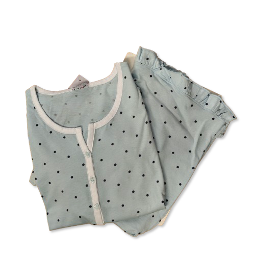 Pigiama corto da donna in jersey, colore azzurro chiaro con fantasia pois.