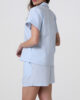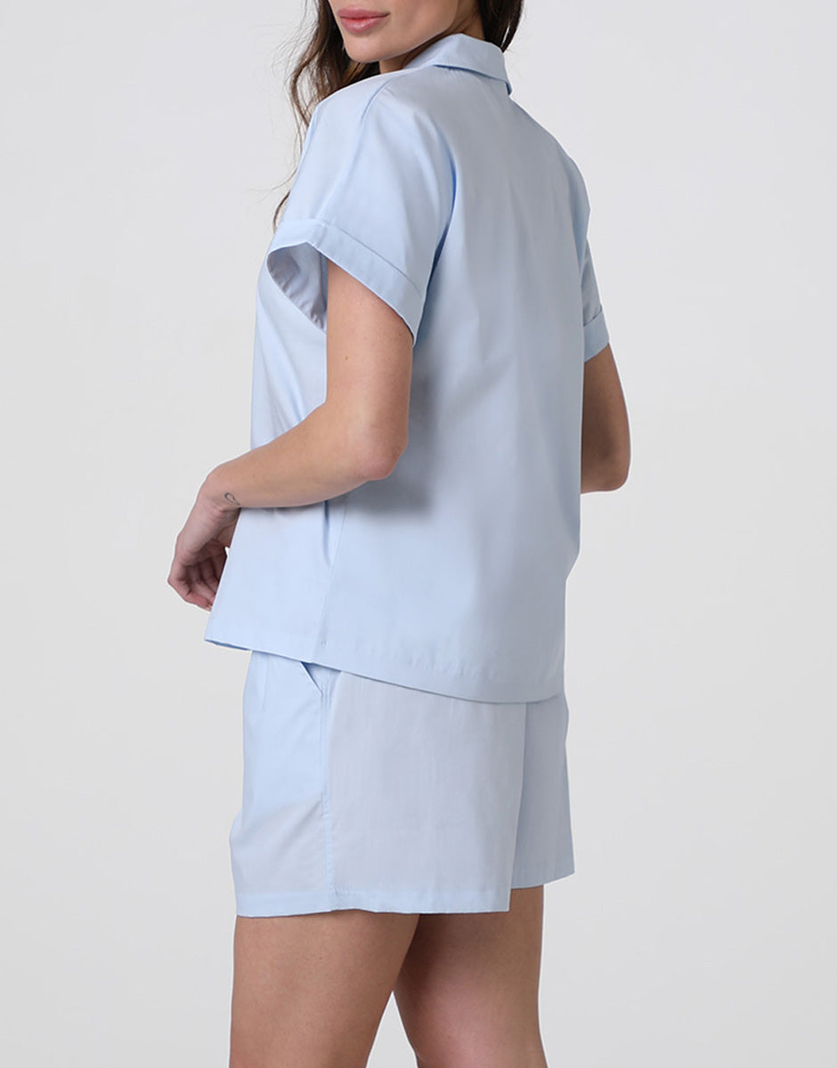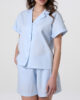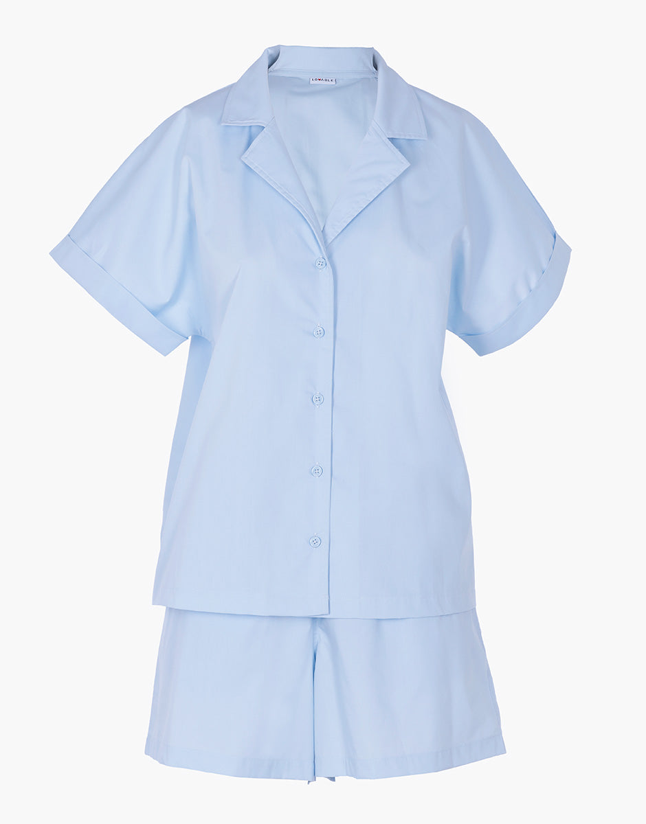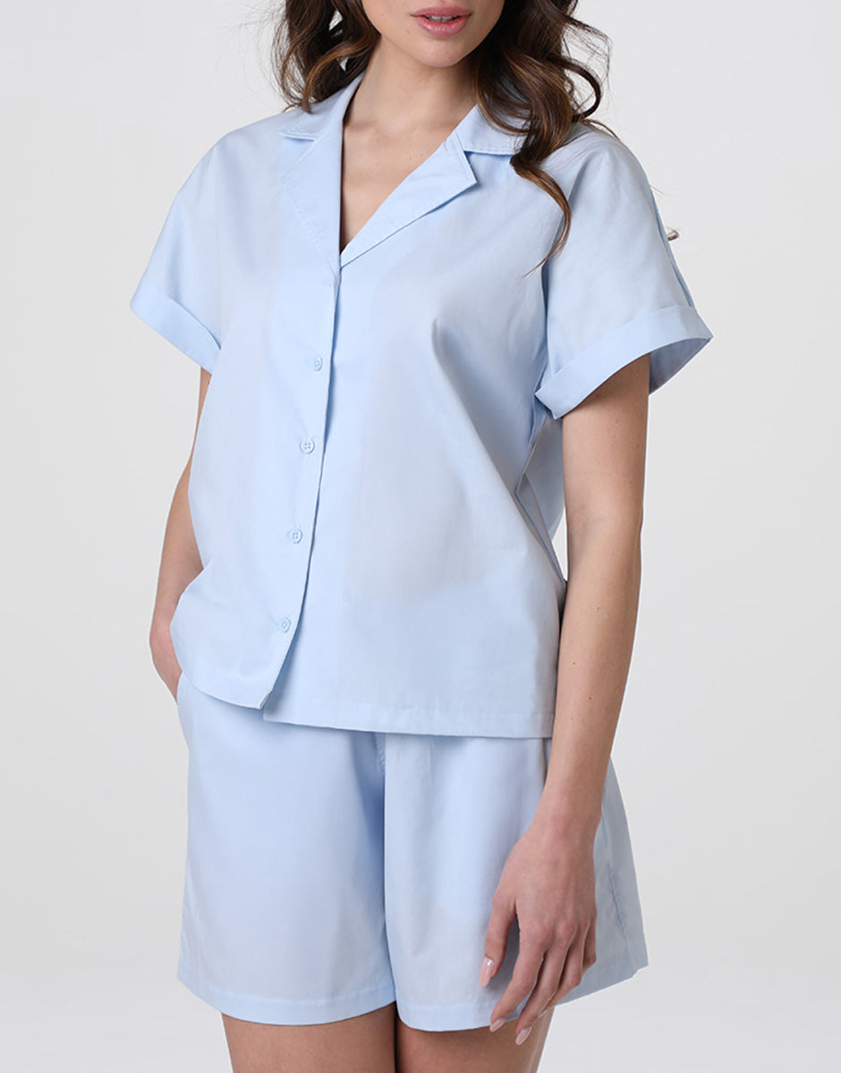 Il pigiama corto da donna in tela di cotone azzurro è ideale per chi cerca un pigiama estivo leggero e confortevole per il riposo e i momenti di relax a casa.