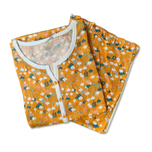 Pigiama corto in cotone, colore arancione in fantasia fiori.