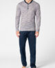 Le righe multicolor esclusive donano un tocco originale, mentre il bordo del collo e i dettagli coordinati con i pantaloni completano il look con cura.