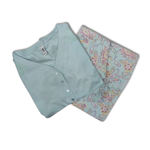 Comprende insieme sia un pantaloncino corto che lungo, in fantasia floreale con sfondo in tinta.